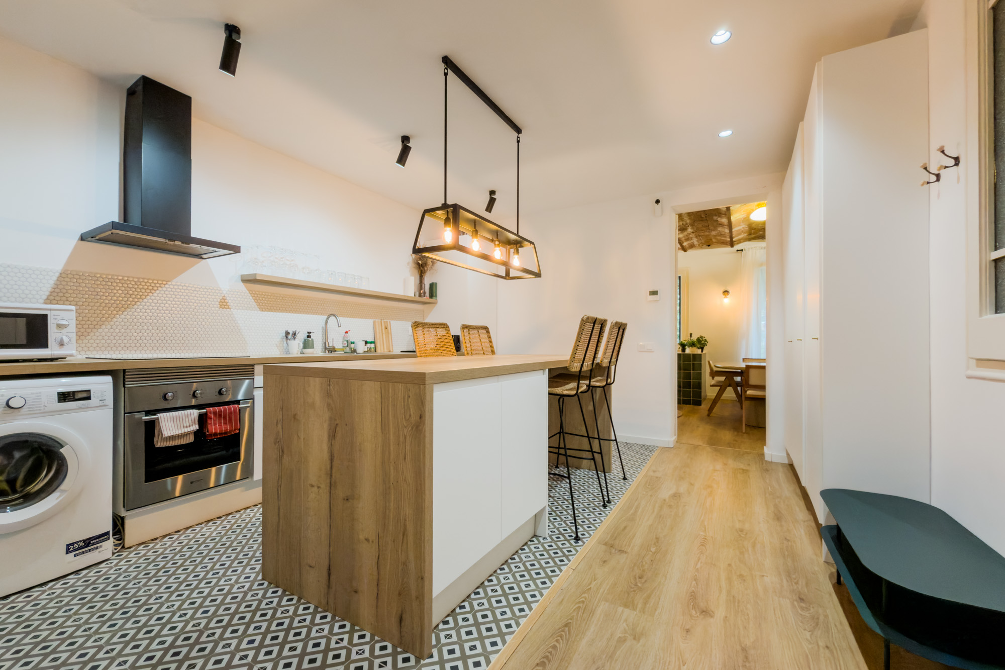 With its typical volta catalana ceiling, warm tones, and abundant natural light, this flat captures the essence of Barcelona while adding a modern, comfortable touch. We named it Glòries.