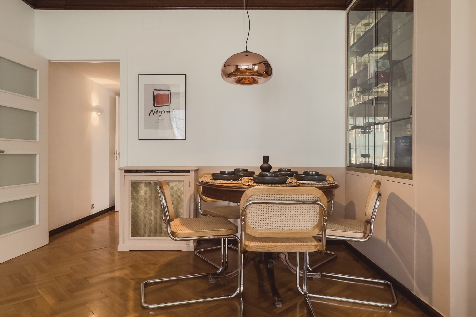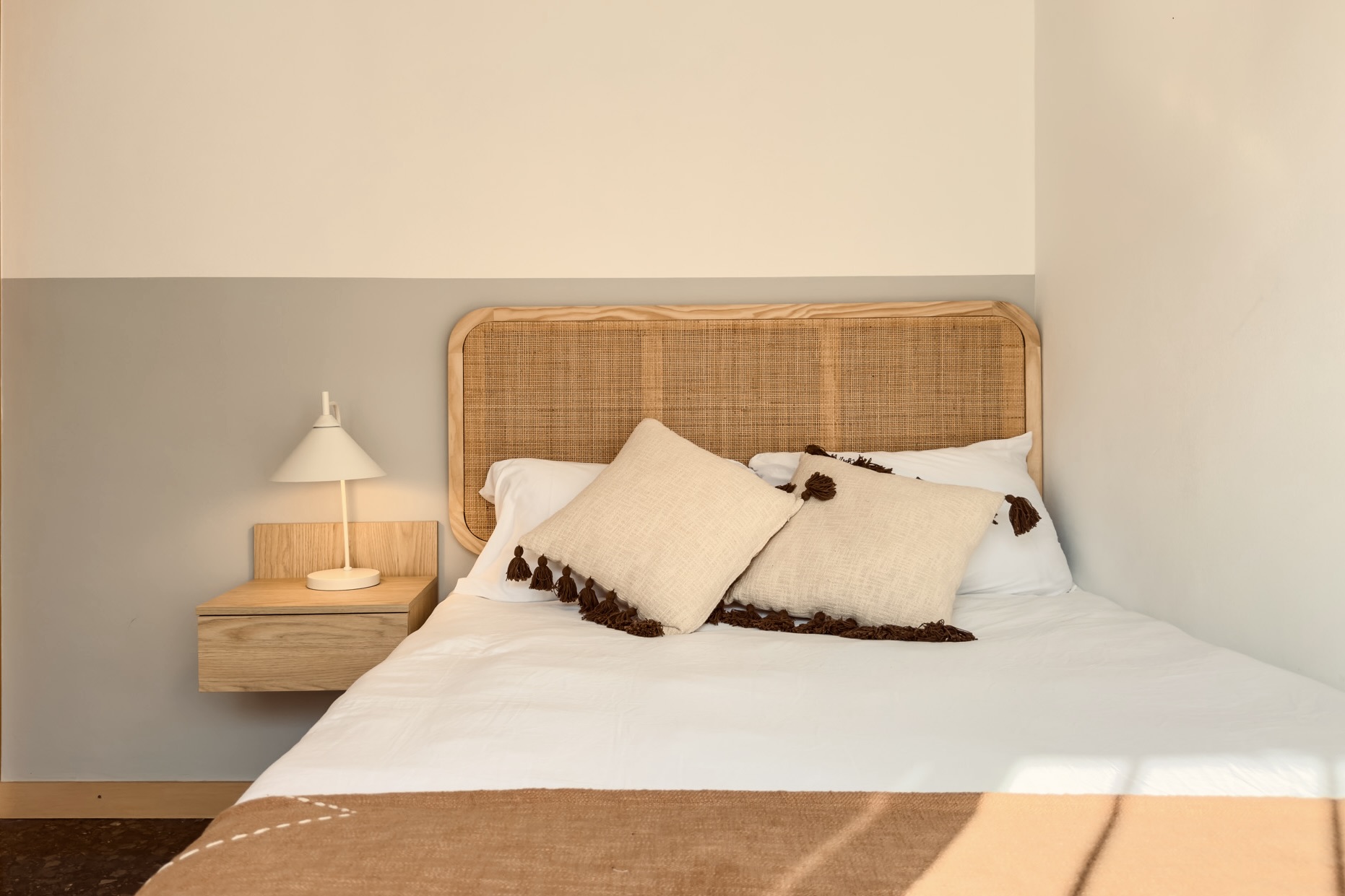 Characterized by its dusty pink and yellow-gold statement pieces, neutral tones, brass and natural wood. This lovely flat got its name from one of our first and dearest residents. We call it Vermut.