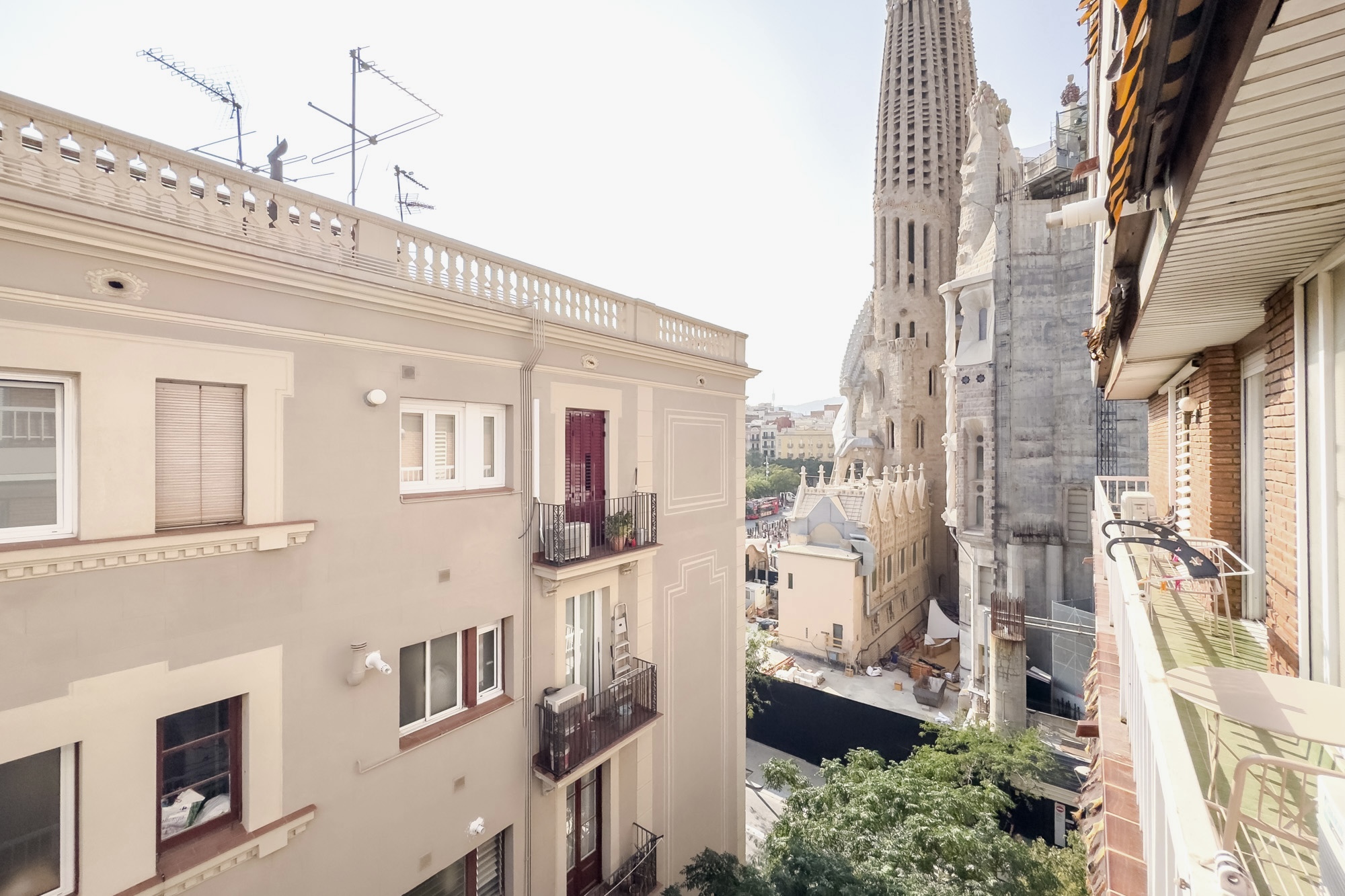 This 128 m² shared flat has a terrace with a direct up-close view of the Sagrada Familia.